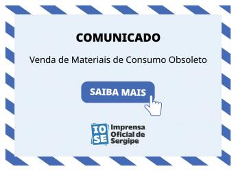 A Imprensa Oficial de Sergipe – IOSE, por meio da Comissão de Trabalho e Licitação, torna público que realizará sessão presencial para venda de materiais de consumo obsoletos, tipo maior oferta, conforme condições previstas no Termo de Referência. A referida sess&atild...