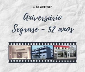 Os servidores da Empresa de Serviços Gráficos de Sergipe - Segrase comemoraram os 52 anos da instituição, teve parabéns, bolo e desejo de vida longa. A Empresa foi criada em 21 de outubro de 1969, quando o Decreto-Lei N. 168, foi assinado pelo ex-governador Lourival Baptista, realizando...