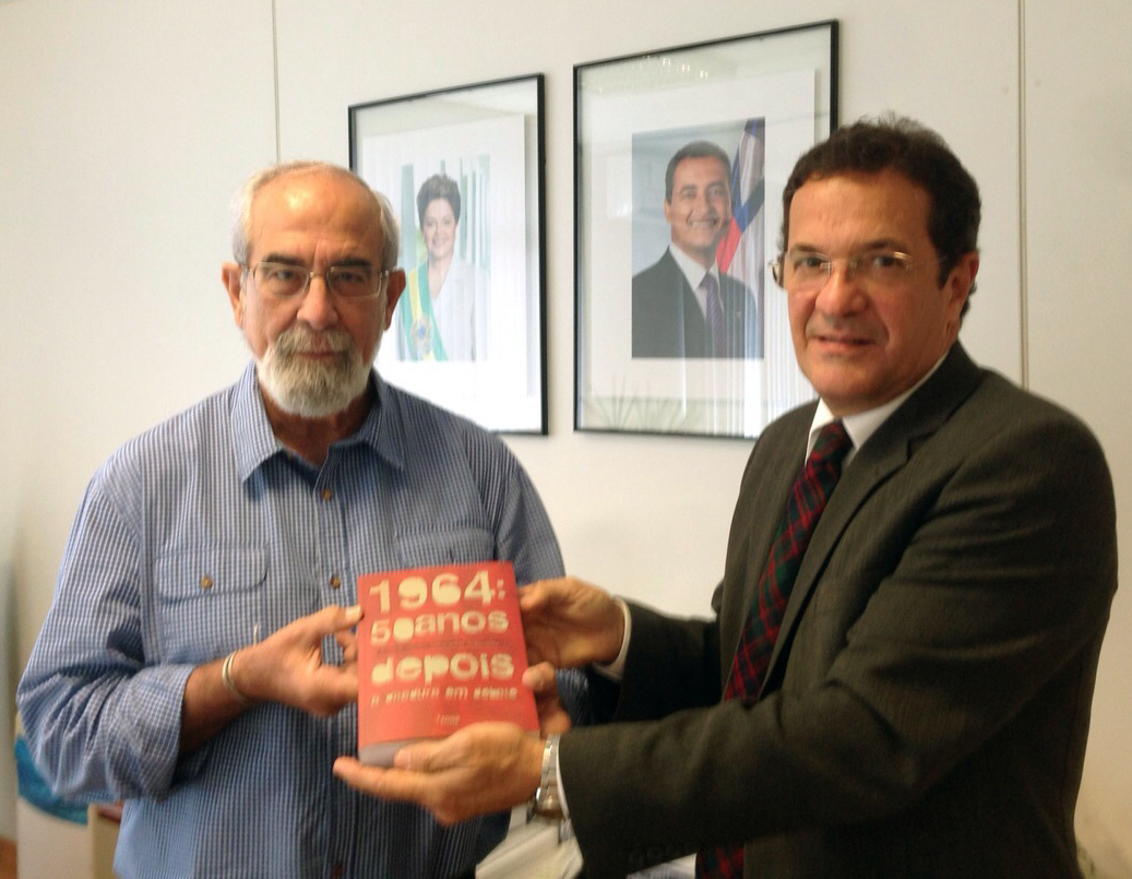 "1964: 50 anos depois. A ditadura em debate" - com uma coletânea de artigos, organizados pelo historiador Grimaldo Carneiro Zachariadhes, o livro editado pela Edise (Editora Diário Oficial de Sergipe), foi entregue ao secretário da Casa Civil do Governo da Bahia, Bruno Dauster, com autógrafo do governador de Sergipe, Jackson Barreto.