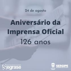 São 126 anos de história completados no dia 24 de agosto, nesse período a Imprensa Oficial de Sergipe carrega em sua trajetória a história do Estado, seja por meio das publicações de atos governamentais, seja noticiando fatos, como a Guerra de Canudos.